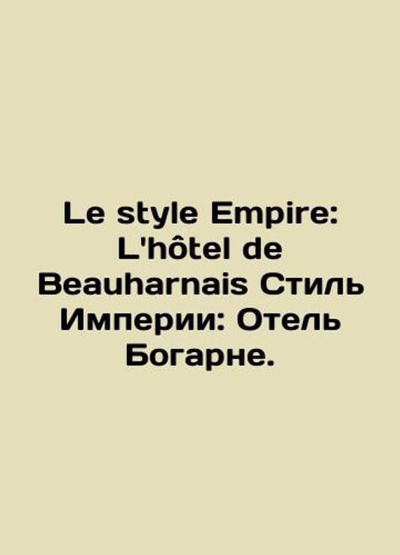 Le style Empire: Lhtel de Beauharnais Empire style: Hotel Bogarnay./Le style Empire: Lhotel de Beauharnais Stil Imperii: Otel Bogarne. Palais de lAmbassade dAllemagne Paris. Librairie centrale dArt et dArchitecture. Paris Palace of the German Embassy in Paris. Central Art and Architecture Bookstore. Paris. Hotel Bogarnay: historic mansion, type of large French townhouse, in the 7th arrondissement of Paris. It was designed by architect Germaine Beauffrand. We have thousands of titles and often several copies of each title may be available. Please feel free to contact us for a detailed description of the copies available. SKUbd-7d40083e6ab8de8c.