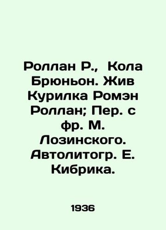 "Rolland R., Cola Brynyon. Romain Rolland, the Kurilka, is alive/Rollan R., Kola Bryunon. Zhiv Kurilka Romen Rollan; Per. s fr. M. Lozinskogo. Avtolitogr. E. Kibrika. Rolland R., Cola Brynyon. Romain Rolland, the Kurilka, is alive. We have thousands of titles and often several copies of each title may be available. Please feel free to contact us for a detailed description of the copies available. SKUbd-7f54703c845e877e."