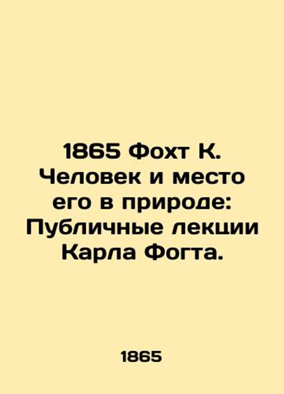 1865 Vogt K. The Man and His Place in Nature: Karl Vogts Public Lectures./1865 Fokht K. Chelovek i mesto ego v prirode: Publichnye lektsii Karla Fogta. Vol. 1.-2nd ed. St. Petersburg: 1866.4, IV, 275 We have thousands of titles and often several copies of each title may be available. Please feel free to contact us for a detailed description of the copies available. SKUbd-7f58841540eb2195.