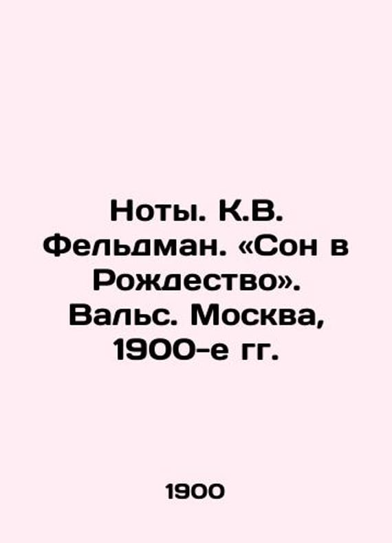 Notes by K.W. Feldman. A Dream at Christmas. Waltz. Moscow, 1900s/Noty. K.V. Feldman. «Son v Rozhdestvo». Vals. Moskva, 1900-e gg. Notes by K.W. Feldman. A Dream at Christmas. Waltz. Moscow, 1900s. We have thousands of titles and often several copies of each title may be available. Please feel free to contact us for a detailed description of the copies available. SKUbd-80633a20cb07869d.