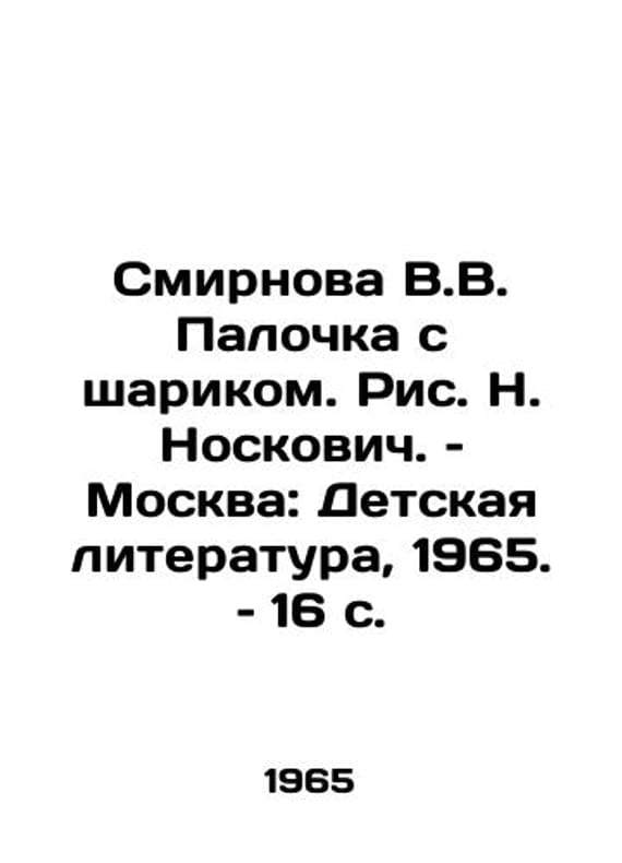 Smirnova V.V. Stick with a balloon. Picture N. Noskovich. Moscow: Childrens Literature, 1965. 16 p/Smirnova V.V. Palochka s sharikom. Ris. N. Noskovich. Moskva: Detskaya literatura, 1965. 16 s. Nina Alekseevna Noskovich (1908-1997) is a Soviet illustrator and graphic artist. She collaborated with the publishers Detgiz, Childrens Literature, and The Kid.We have thousands of titles and often several copies of each title may be available. Please feel free to contact us for a detailed description of the copies available. SKUbd-806e13e416a566a7.