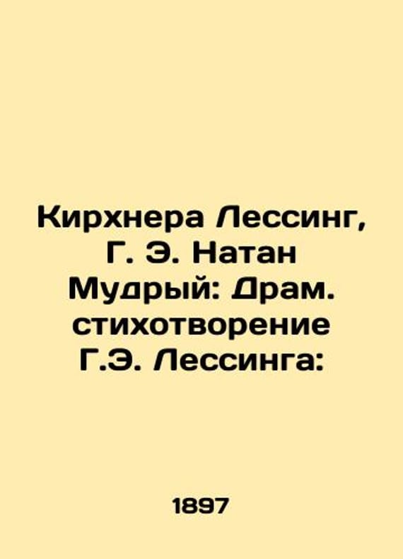 Kirchner Lessing, G. E. Nathan the Wise: A Dramatic Poem by G. E. Lessing:/Kirkhnera Lessing, G. E. Natan Mudryy: Dram. stikhotvorenie G.E. Lessinga: A poem by G. E. Lessing: An Essay with an Historical Reference, an Addendum to a Translation and a Bibliographic Decree from Victor Krylov, St. Petersburg: A.F. Marx, Census 1897.-6, 402We have thousands of titles and often several copies of each title may be available. Please feel free to contact us for a detailed description of the copies available. The delivery of this book might be delayed beyond the usual timeframe due to extended processing and preparation before shipment, and faster shipping options are not offered. Please inform us if you need the order by a certain date or have a deadline.SKUbd-80e0678d67c3f894