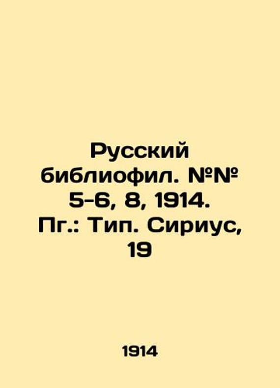 Russian bibliophile. # # 5-6, 8, 1914. Pg.: Type. Sirius, 19/Russkiy bibliofil. ## 5-6, 8, 1914. Pg.: Tip. Sirius, 19 Russian bibliophile. # # 5-6, 8, 1914. Pg.: Type. Sirius, 1914. 392 p. SKUbd-811602aeaab7da2d.We have thousands of titles and often several copies of each title may be available. Please feel free to contact us for a detailed description of the copies available. The delivery of this book might be delayed beyond the usual time due to extended processing and preparation before shipment, and faster shipping options are not offered. Please inform us if you need the order by a certain date or have a deadline.SKUbd-811602aeaab7da2d