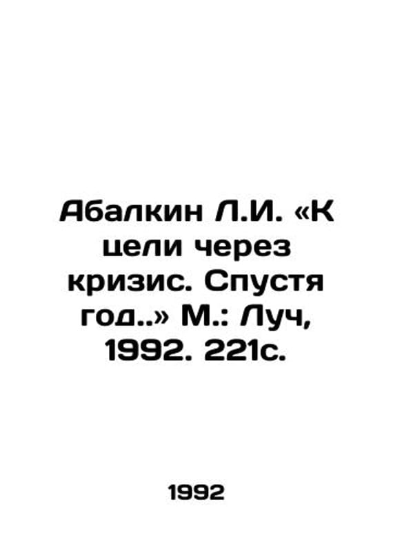 Abalkin L.I. Toward a Goal Through the Crisis. A Year Later./Abalkin L.I. «K tseli cherez krizis. Spustya god. M.: Luch, 1992. 221s. Leonid Ivanovich Abalkin (May 5, 1930, Moscow, May 2, 2011, there) was a Soviet and Russian economist, Academician of the USSR Academy of Sciences (1987), Russian Academy of Sciences. He was Deputy Chairman of the Council of Ministers of the USSR. We have thousands of titles and often several copies of each title may be available. Please feel free to contact us for a detailed description of the copies available. SKUbd-81291d3fbc18f286.