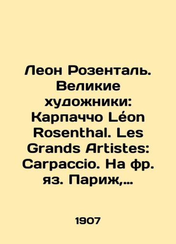 "Leon Rosenthal. Great Artists: Carpaccio Leon Rosenthal. Les Grands Artistes: Carpaccio. In French, Paris, 1907 128 pp., 22x16 sm./Leon Rozental. Velikie khudozhniki: Karpachcho Leon Rosenthal. Les Grands Artistes: Carpaccio. Na fr. yaz. Parizh, 1907 128 str., S.Pb.22x16 sm. Vittore Carpaccio, Vittorio Carpathius, Carpatio, Scarpaza, Sharpaza; 1465, 15251526), the Italian Renaissance painter of the Venetian school. Vittore Scarpaccio, or Carpaccio, lived in Venice in the late fifteenth and early sixteenth centuries. We have thousands of titles and often several copies of each title may be available. Please feel free to contact us for a detailed description of the copies available. SKUbd-8224a343324d14a1."