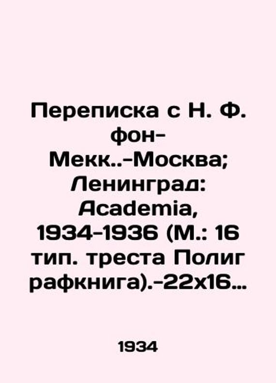 "Correspondence with N. F. von-Meck. -Moscow; Leningrad: Academia, 1934-1936 (Moscow: 16 types of Polygraphbook Trust) -22x16 sm./Perepiska s N. F. fon-Mekk.-Moskva; Leningrad: Academia, 1934-1936 (M.: 16 tip. tresta Poligrafkniga).-22x16 sm. Correspondence with N. F. von-Meck. -Moscow; Leningrad: Academia, 1934-1936 (Moscow: 16 Polygraphbook Trust).-. We have thousands of titles and often several copies of each title may be available. Please feel free to contact us for a detailed description of the copies available. SKUbd-8288d993d6ca5b01."