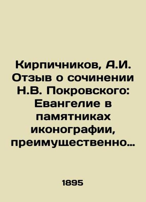 "Bricks, A.I. A review of the work of Nikolai Pokrovsky: The Gospel in Monuments of Iconography, Predominantly Byzantine and Russian. St. Petersburg, 1892. With a Table./Kirpichnikov, A.I. Otzyv o sochinenii N.V. Pokrovskogo: Evangelie v pamyatnikakh ikonografii, preimushchestvenno vizantiyskikh i russkikh. S.Pb.1892. S tablitsey. Bricks, A.I. A review of the work of Nikolai Pokrovsky: The Gospel in Monuments of Iconography, Predominantly Byzantine and Russian. St. Petersburg, 1892. With a Table. St. Petersburg: 1895, -53 p.; ill.;. We have thousands of titles and often several copies of each title may be available. Please feel free to contact us for a detailed description of the copies available. The delivery of this book might be delayed beyond the usual timeframe due to extended processing and preparation before shipment, and faster shipping options are not offered. Please inform us if you need the order by a certain date or have a deadline.SKUbd-8290d3099ff2eea9"