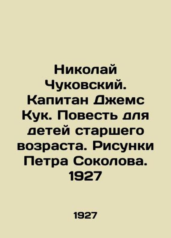 Nikolai Chukovsky. Captain James Cook. A Tale for Older Children. Sketches by Pyotr Sokolov. 1927/Nikolay Chukovskiy. Kapitan Dzhems Kuk. Povest dlya detey starshego vozrasta. Risunki Petra Sokolova. 1927 Nikolai Chukovsky. Captain James Cook. A Tale for Older Children. Sketches by Pyotr Sokolov. 1927. State Publishing House, type. Printing yard, range 7000, 136 pages.We have thousands of titles and often several copies of each title may be available. Please feel free to contact us for a detailed description of the copies available. The delivery of this book might be delayed beyond the usual timeframe due to extended processing and preparation before shipment, and faster shipping options are not offered. Please inform us if you need the order by a certain date or have a deadline.SKUbd-82d762bb70706ec9