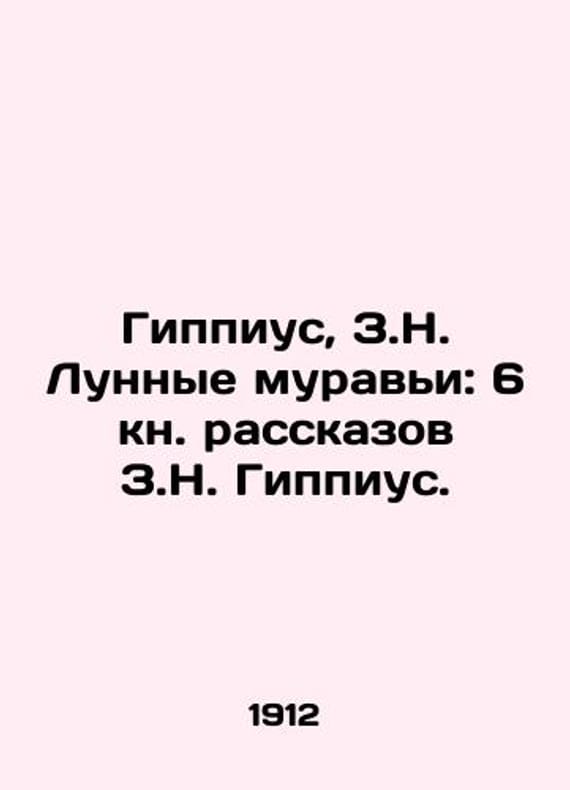 "Hippius, Z.N. Moon ants: 6 short stories by Z.N. Hippius./Gippius, Z.N. Lunnye muravi: 6 kn. rasskazov Z.N. Gippius. Hippius, Z.N. Moon ants: 6 short stories by Z.N. Gippius.-M.: Altsiona, 1912.-4, 221, 16 p.; 20.5x14 sm.We have thousands of titles and often several copies of each title may be available. Please feel free to contact us for a detailed description of the copies available. SKUbd-82d8228aac63d135."