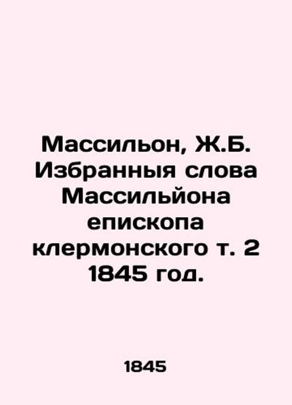 Massillon, J.B. Selected words of Massillon, Bishop of Clermont, vol. 2, 1845./Massilon, Zh.B. Izbrannyya slova Massilyona episkopa klermonskogo t. 2 1845 god. Massillon, J.B. Selected words of Massillon, Bishop of Clermont, vol. 2, 1845. 309 pages,. We have thousands of titles and often several copies of each title may be available. Please feel free to contact us for a detailed description of the copies available. SKUbd-82fc1bd17748683a.