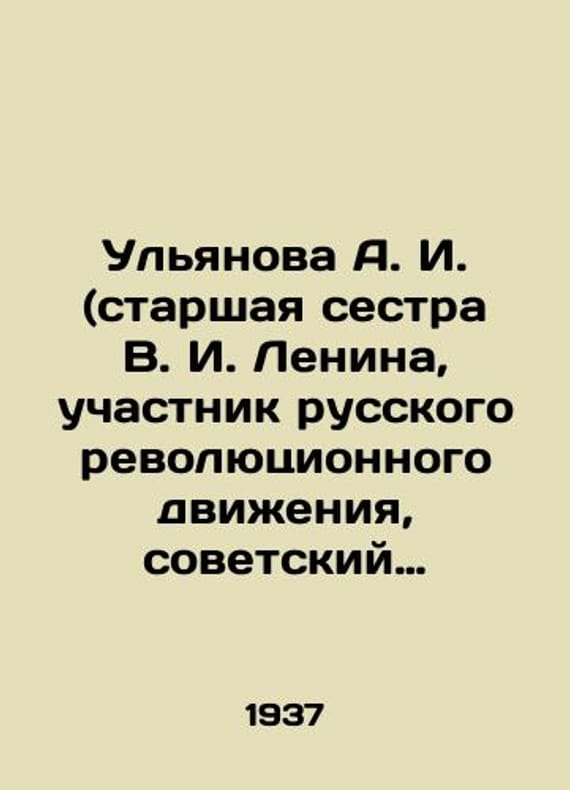 Ulyanova A. I. (older sister of V.I. Lenin, member of the Russian revolutionary movement, Soviet statesman and party official) Childrens and school years of Ilyich A. I. Ulyanov./Ulyanova A. I. (starshaya sestra V. I. Lenina, uchastnik russkogo revolyutsionnogo dvizheniya, sovetskiy gosudarstvennyy i partiynyy deyatel) Detskie i shkolnye gody Ilicha A. I. Ulyanova. Ulyanova A. I. (older sister of V. I. Lenin, member of the Russian revolutionary movement, Soviet statesman and party figure) Childrens and School Years of Ilyich A. I. Ulyanov. We have thousands of titles and often several copies of each title may be available. Please feel free to contact us for a detailed description of the copies available. SKUbd-830666aff139c363.