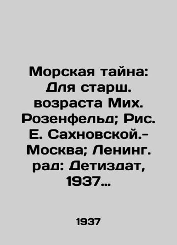 "Marine Mystery: For the Senior Age Mikh. Rosenfeld; Ric E. Sakhnovskaya-Moscow; Leningrad: Detizdat, 1937 (Moscow: 1 type. State Military Publishing) -Binding, 159 p., 7 incl. and/Morskaya tayna: Dlya starsh. vozrasta Mikh. Rozenfeld; Ris. E. Sakhnovskoy.-Moskva; Lening. rad: Detizdat, 1937 (Moskva: 1 tip. Gos. voen. izd.).-Pereplet, 159 s., 7 vkl. l. i Maritime Mystery: For the Senior Age Mikh. Rosenfeld; Ric E. Sakhnovskaya-Moscow; Leningrad: Detizdat, 1937. We have thousands of titles and often several copies of each title may be available. Please feel free to contact us for a detailed description of the copies available. SKUbd-83a739f4a45efa3b."