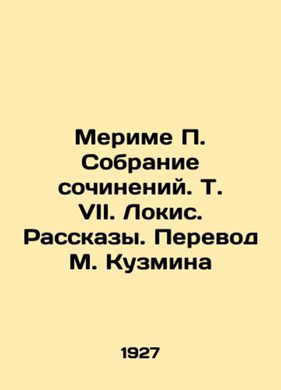 Merime Collection of Works. Vol.VII. Lokis. Stories. Translation by M. Kuzmin/Merime Sobranie sochineniy. T. VII. Lokis. Rasskazy. Perevod M. Kuzmina L. Academia. 1927. 151, 5 We have thousands of titles and often several copies of each title may be available. Please feel free to contact us for a detailed description of the copies available. SKUbd-847380808f2caba.