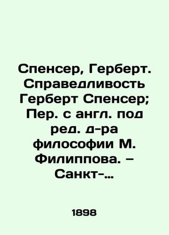 "Spencer, Herbert. Justice Herbert Spencer; Translated from English, edited by M.Filippov, Ph.D. St. Petersburg: type. A.A. Porokhovshchikov, 1898/Spenser, Gerbert. Spravedlivost Gerbert Spenser; Per. s angl. pod red. d-ra filosofii M. Filippova. Sankt-Peterburg: tip. A.A. Porokhovshchikova, 1898. 242, 1 s.: 24x16 sm. Spencer, Herbert. Justice Herbert Spencer; Translated from English, edited by M.Filippov, Ph.D. St. Petersburg: type. A.A. Porokhovshchikov, 1898.We have thousands of titles and often several copies of each title may be available. Please feel free to contact us for a detailed description of the copies available. SKUbd-85c5cd868eb4885a."