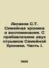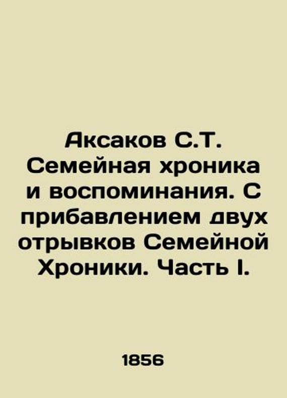 Aksakov S. Family Chronicle and Memories. With the addition of two passages of Family Chronicle. Part I In Russian /Aksakov S. Semeynaya khronika i vospominaniya. S pribavleniem dvukh otryvkov Semeynoy Khroniki. Chast I Moscow In the printing house of L.Stepanova, 1856. 6,285s. We have thousands of titles and often several copies of each title may be available. Please feel free to contact us for a detailed description of the copies available. SKUalb624ece61eebfdc83.