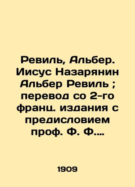 "Reville, Albert. Jesus of Nazareth Albert Reville; translation from the 2nd French edition with a foreword by Prof. F. F. Zielinski./Revil, Alber. Iisus Nazaryanin Alber Revil; perevod so 2-go frants. izdaniya s predisloviem prof. F. F. Zelinskago. Reville, Albert. Jesus of Nazareth, Albert Reville; translated from the 2nd French edition with a foreword by Prof. F. F. Zelinsky. St. Petersburg: Typo-lit. Energia, 1909.We have thousands of titles and often several copies of each title may be available. Please feel free to contact us for a detailed description of the copies available. SKUbd-865a9f993929dbb3."