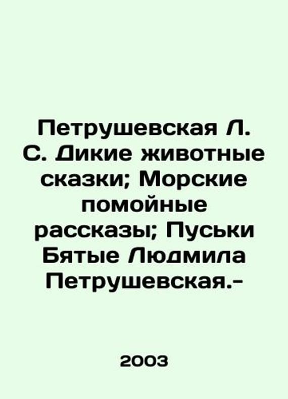 "Petrushevskaya L. S. Wild Animal Tales; Marine Litter Tales; Puski Byatie Lyudmila Petrushevskaya. -/Petrushevskaya L. S. Dikie zhivotnye skazki; Morskie pomoynye rasskazy; Puski Byatye Lyudmila Petrushevskaya.- Wild Animal Tales, Sea Rubbish Tales, Puski Byatie - the most famous collection of Lyudmila Petrushevskaya, her bestseller. Some words from the book Puski Byatie (for example, Puski Byatie, Zumo-Zumo Nekuzyavo) have entered the colloquial language and into new dictionaries. And the fairy tale of Puski Byatie, with which it all began, has existed for almost twenty-five years, passing from one generation to the next. Now this edition has also fallen into your hands, dear new readers. We have thousands of titles and often several copies of each title may be available. Please feel free to contact us for a detailed description of the copies available. SKUbd-87bad6f8ae96876d."