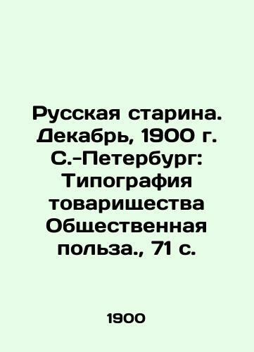 Russian Old Man. December, 1900, St. Petersburg: Printing House of the Partnership Public Utility, 71 p./Russkaya starina. Dekabr, 1900 g. S.-Peterburg: Tipografiya tovarishchestva Obshchestvennaya polza., 71 s. Russian Old Man. December, 1900, St. Petersburg: Printing House of the Partnership Public Utility, 71 We have thousands of titles and often several copies of each title may be available. Please feel free to contact us for a detailed description of the copies available. SKUbd-88ee65e2bc92e660.