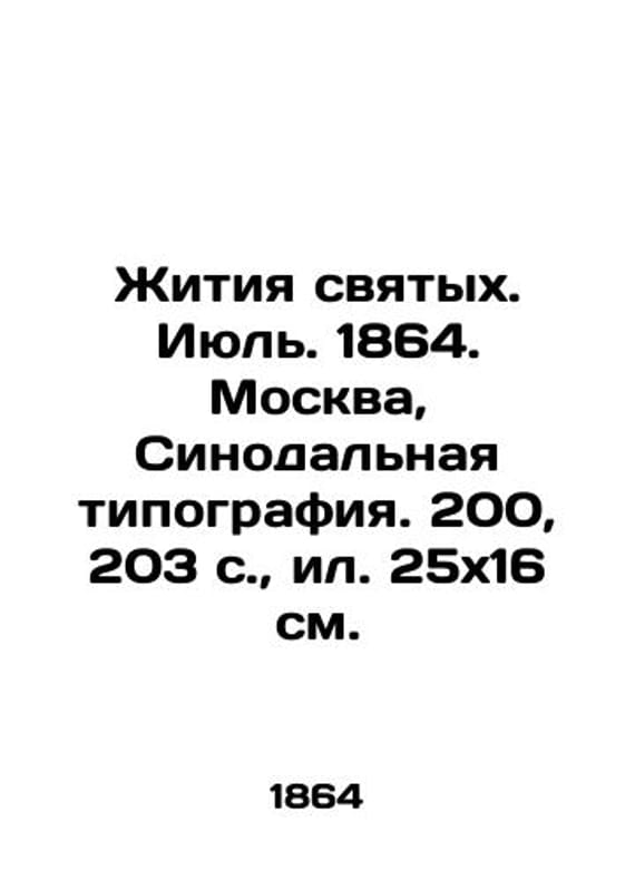 Lives of Saints. July 1864. Moscow, Synodal Printing House. 200, 203 p., figure 25x16 sm./Zhitiya svyatykh. Iyul. 1864. Moskva, Sinodalnaya tipografiya. 200, 203 s., il. 25x16 sm. Lives of Saints. July 1864. Moscow, Synodal Printing House. 200, 203 p. We have thousands of titles and often several copies of each title may be available. Please feel free to contact us for a detailed description of the copies available. SKUbd-88f844b52a67ef37.