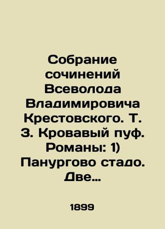 "A collection of works by Vsevolod Vladimirovich Krestovsky. Vol. 3. Bloody poof. Novels: 1) The Panurgovo herd. Two forces. Essays: Mr. Przependowski. Under the chestnuts of the Saxon garden. Edited by Y.L. Yelets./Sobranie sochineniy Vsevoloda Vladimirovicha Krestovskogo. T. 3. Krovavyy puf. Romany: 1) Panurgovo stado. Dve sily. Ocherki: Pan Pshependovskiy. Pod kashtanami Saksonskogo sada. Pod redaktsiey Yu.L. Eltsa. A collection of works by Vsevolod Vladimirovich Krestovsky. Vol. 3. Bloody poof. Novels: 1) The Panurgovo Herd. Two forces. Essays: Mr. Przependovsky. Under the chestnuts of the Saxon Garden. Edited by Y.L. Yelets. St. Petersburg: 1899, -622 p.;.We have thousands of titles and often several copies of each title may be available. Please feel free to contact us for a detailed description of the copies available. SKUbd-8947d6b41aa1978d."
