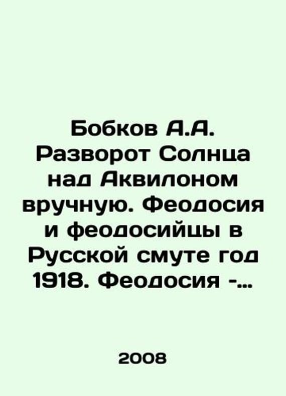 Bobkov A.A. Manually Turning the Sun over Aquilon. Feodosia and Feodosians in the Russian Trouble Year 1918. Feodosiya and Simferopol: The Original-M. 2008./Bobkov A.A. Razvorot Solntsa nad Akvilonom vruchnuyu. Feodosiya i feodosiytsy v Russkoy smute god 1918. Feodosiya Simferopol: Original-M. 2008g. Bobkov A.A. Manually Turning the Sun Over Aquilon. Feodosia and Feodosians in the Russian Trouble Year 1918. Feodosiya and Simferopol: The Original-M. 2008. 384 p. We have thousands of titles and often several copies of each title may be available. Please feel free to contact us for a detailed description of the copies available. SKUbd-89b5bb6a5c1cf011.