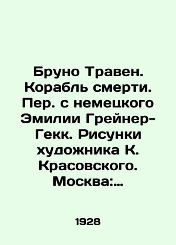 "Bruno Traven. Death Ship. Translated from the German Emilia Greiner-Gekk. Drawings by the artist K. Krasovsky. Moscow: Moscow Worker, 1928.-66 pp.; 30 sm./Bruno Traven. Korabl smerti. Per. s nemetskogo Emilii Greyner-Gekk. Risunki khudozhnika K. Krasovskogo. Moskva: Moskovskiy rabochiy, 1928.-66 str. s ill.; 30 sm. Bruno Traven. Death Ship. Translated from the German Emilia Greiner-Gekk. Drawings by the artist K. Krasovsky. Moscow: Moscow Worker, 1928.-66 pp.; 30 sm. We have thousands of titles and often several copies of each title may be available. Please feel free to contact us for a detailed description of the copies available. SKUbd-8a791684beb8e4fc."