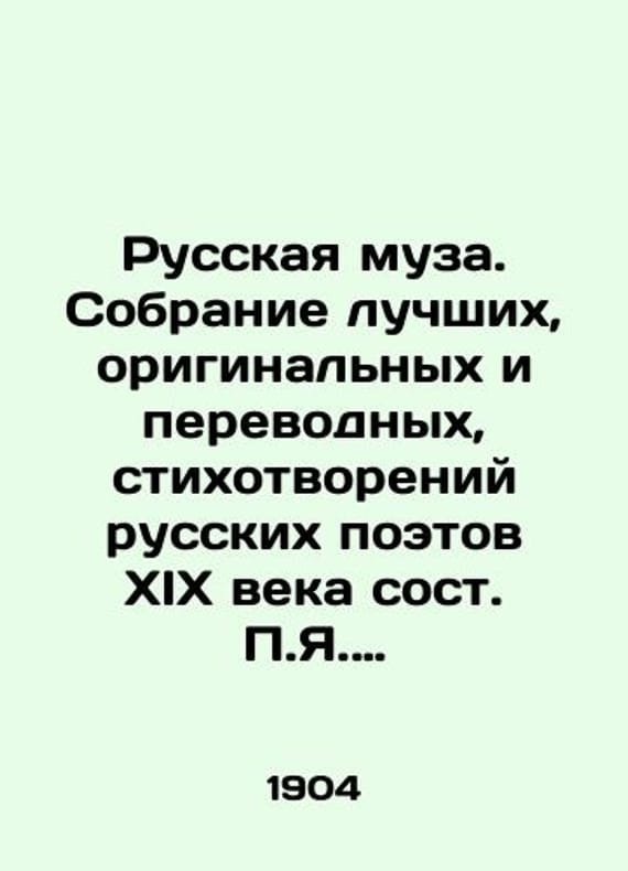 "Russian Muse. A collection of the best, original and translated poems by Russian poets of the nineteenth century, composed by Peter Yakubovich./Russkaya muza. Sobranie luchshikh, originalnykh i perevodnykh, stikhotvoreniy russkikh poetov XIX veka sost. Ya. Petr Yakubovich. Russian muse. Ya. Peter Yakubovich. St. Petersburg: Editorial Board of the journal Russian wealth; Type. N.N. Klobukova, 1904. VIII, 448 We have thousands of titles and often several copies of each title may be available. Please feel free to contact us for a detailed description of the copies available. SKUbd-8a8aef7d19a024e1."