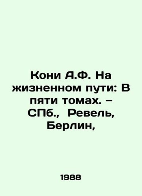 Kony A.F. On the Road to Life: In Five Volumes. St. Petersburg, Revel, Berlin,/Koni A.F. Na zhiznennom puti: V pyati tomakh. S.Pb. Revel, Berlin, Complete set of five volumes. Volumes 1-4 - Life Edition, Volume 5 - Postmortem. Kony Anatoly Fedorovich (1844-1927) is a famous judicial figure and orator, doctor of criminal law, honorary member of the Academy of Sciences and many scientific societies. A.F. Kony participated in judicial reform, held high positions in judicial institutions. We have thousands of titles and often several copies of each title may be available. Please feel free to contact us for a detailed description of the copies available. SKUbd-8bae5a18afdfdc12.