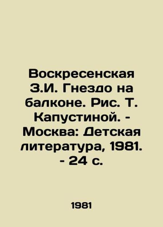 Voskresenskaya Z.I. Nest on the Balcony, by T. Kapusina, Moscow: Childrens Literature, 1981, 24 p/Voskresenskaya Z.I. Gnezdo na balkone. Ris. T. Kapustinoy. Moskva: Detskaya literatura, 1981. 24 s. Voskresenskaya Z.I. Nest on the Balcony, by T. Kapusina, Moscow: Childrens Literature, 1981, 24 p.We have thousands of titles and often several copies of each title may be available. Please feel free to contact us for a detailed description of the copies available. SKUbd-8bf3fe7899b00e07.