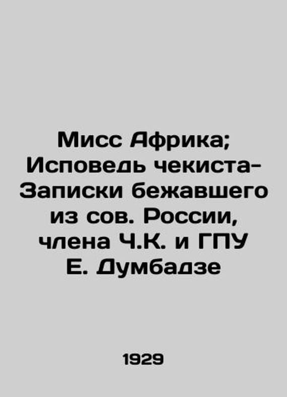 "Miss Africa; Confession of the Secret Service-Note Fugitive from Russia, a member of the C.K. and the GPU, E. Dumbadze/Miss Afrika; Ispoved chekista-Zapiski bezhavshego iz sov. Rossii, chlena Ch.K. i GPU E. Dumbadze ILLUSTRATED RUSSIA. Weekly literary-illustrated magazine. 6th year of publication. Editor: M.P, Mironov. 1929 # 14 (203). Paris. 24 p.: il., 23x31 sm. We have thousands of titles and often several copies of each title may be available. Please feel free to contact us for a detailed description of the copies available. SKUbd-8c413ecbfab18f17."