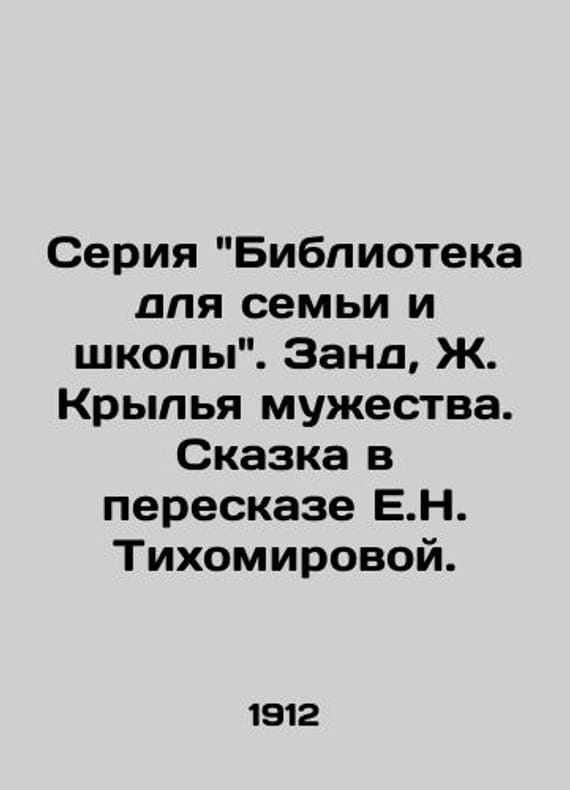 Library for Family and School series. Zand, J. Wings of Courage. Tale in a retelling by E.N. Tikhomirova. /Seriya Biblioteka dlya semi i shkoly. Zand, Zh. Krylya muzhestva. Skazka v pereskaze E.N. Tikhomirovoy. Library for Family and School series. Zand, Zh. Wings of Courage. Tale in a retelling by E.N. Tikhomirova. Moscow: Edition of the editorial office of the magazine Young Russia, type. V.M. Sablin, 1912. We have thousands of titles and often several copies of each title may be available. Please feel free to contact us for a detailed description of the copies available. SKUbd-8c9dbe9c965d4549.