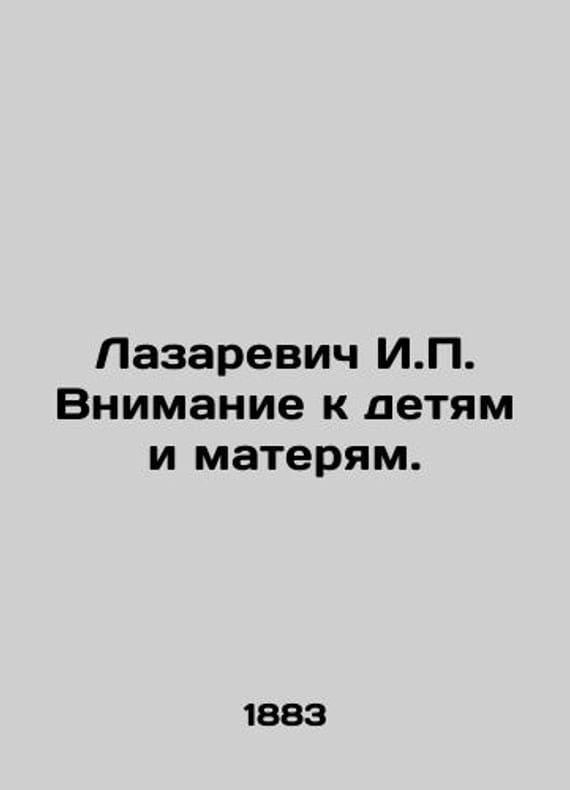 Lazarevich I. Attention to Children and Mothers./Lazarevich I. Vnimanie k detyam i materyam. He invented many obstetrical and gynaecological tools. I. Lazarevich was the author of more than 90 scientific works, the most important of which are the two-volume textbook The Course of Obstetrics, Womens Activity, Attention to Children and Mothers. In his work Attention to Children and Mothers, he wrote about increasing the role of society in the upbringing and protection of children from unfair and cruel treatment, the need to establish nurseries (lullabies), kindergartens, hospitals and clinics, monitoring the correct feeding of children, challenging vaccinations, and setting up gymnastics schools.We have thousands of titles and often several copies of each title may be available. Please feel free to contact us for a detailed description of the copies available. SKUbd-8ca83801c712d609.