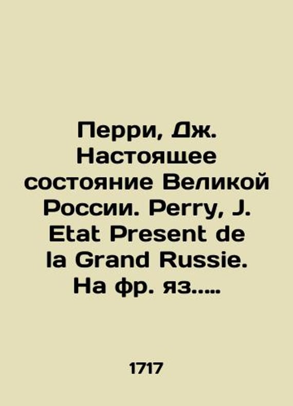 Perry, J. The Present State of Great Russia. Perry, J. Etat Present de la Grand Russie. Brussels: Pour la Compagnie, 17/Perri, Dzh. Nastoyashchee sostoyanie Velikoy Rossii. Perry, J. Etat Present de la Grand Russie. Na fr. yaz.. Bryussel: Pour la Compagnie, 17 Perry, J. Perry, J. Etat Present de la Grand Russie. Brussels: Pour la Compagnie, 1717.. SKUbd-8cfd227ab6d64c71.We have thousands of titles and often several copies of each title may be available. Please feel free to contact us for a detailed description of the copies available. The delivery of this book might be delayed beyond the usual time due to extended processing and preparation before shipment, and faster shipping options are not offered. Please inform us if you need the order by a certain date or have a deadline.SKUbd-8cfd227ab6d64c71