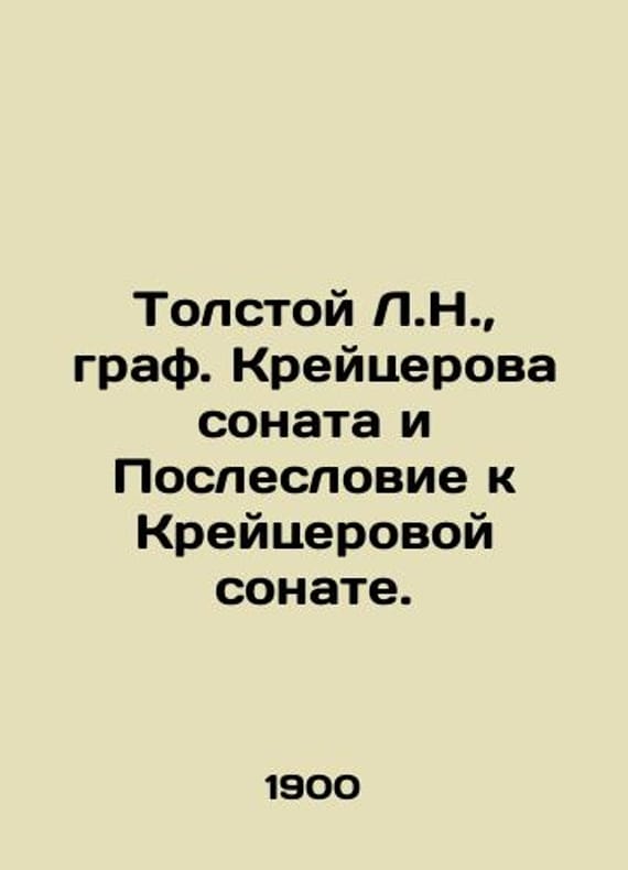 Tolstoy L.N., Count of the Kreutserov Sonata and the Postscript to the Kreutserov Sonata./Tolstoy L.N., graf. Kreytserova sonata i Posleslovie k Kreytserovoy sonate. Tolstoy L.N., Count of Kreutserova Sonata and the Postscript to the Kreutserova Sonata. Text without abbreviations. St. Petersburg, I.Komelovs Type-II, 1900. 160We have thousands of titles and often several copies of each title may be available. Please feel free to contact us for a detailed description of the copies available. SKUbd-8d6a5bd4ce26c776.