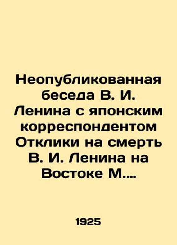 "An Unpublished Conversation of V.I. Lenin with a Japanese Correspondent Reactions to the Death of V.I. Lenin in the East by M. Rafail, M. Pavlovich, N. Narimanov and A. Khodorov. Lenin and Vostok,"" supplement - Moscow: Scientific Association of Oriental Studies of the USSR Union, 1925.-79 p/Neopublikovannaya beseda V. I. Lenina s yaponskim korrespondentom Otkliki na smert V. I. Lenina na Vostoke M. Rafaila, M. Pavlovicha, N. Narimanova i A. Khodorova.Lenin i Vostok . , dop.-Moskva : Nauch. assots. vostokovedeniya Soyuza SSSR, 1925.-79 s. An Unpublished Conversation of V.I. Lenin with a Japanese Correspondent Reactions to the Death of V.I. Lenin in the East by M. Rafail, M. Pavlovich, N. Narimanov and A. Khodorov. Lenin and Vostok,"" supplement - Moscow: Scientific Association of Oriental Studies of the USSR Union, 1925.-79 p. SKUbd-8d89b1dcc792596d.We have thousands of titles and often several copies of each title may be available. Please feel free to contact us for a detailed description of the copies available. The delivery of this book might be delayed beyond the usual time due to extended processing and preparation before shipment, and faster shipping options are not offered. Please inform us if you need the order by a certain date or have a deadline.SKUbd-8d89b1dcc792596d"