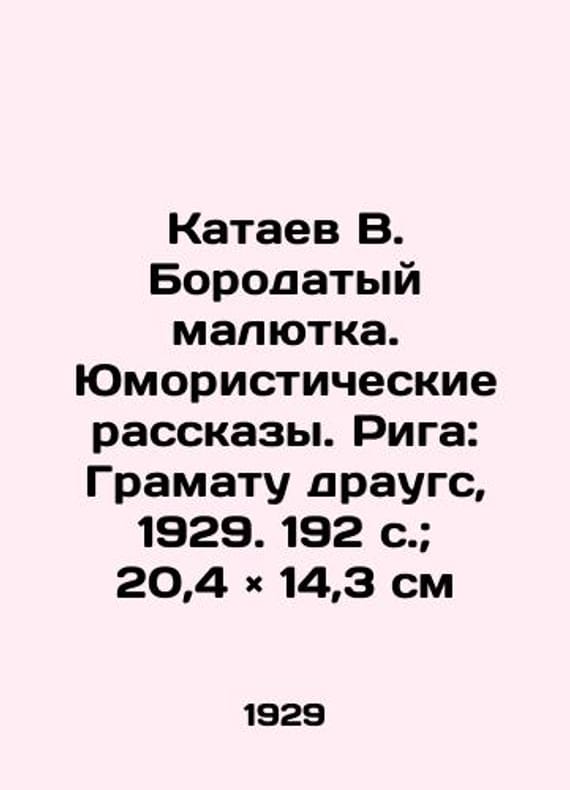 "Kataev V. The bearded little boy. Humorous stories. Riga: Gramatu draugs, 1929. 192 p.; 20.4 - 14.3 cm/Kataev V. Borodatyy malyutka. Yumoristicheskie rasskazy. Riga: Gramatu draugs, 1929. 192 s.; 20,4 - 14,3 sm Kataev V. The bearded little boy. Humorous stories. Riga: Gramatu draugs, 1929. 192 p.; 20.4 - 14.3 sm. We have thousands of titles and often several copies of each title may be available. Please feel free to contact us for a detailed description of the copies available. SKUbd-8e25c3aee3cb7e34."
