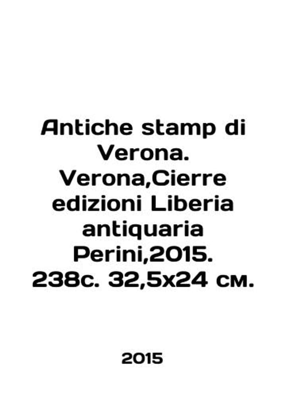 Antiche stamp di Verona. Verona, Cierre edizioni Liberia antiquaria Perini, 2015. 238p. 32.5x24 sm./Antiche stamp di Verona. Verona,Cierre edizioni Liberia antiquaria Perini,2015. 238s. 32,5x24 sm. Antiche stamp di Verona. Verona, Cierre edizioni Liberia antiquaria Perini, 2015. 238p. 32.5x24 sm. We have thousands of titles and often several copies of each title may be available. Please feel free to contact us for a detailed description of the copies available. SKUbd-8eda53d68b8dabb2.