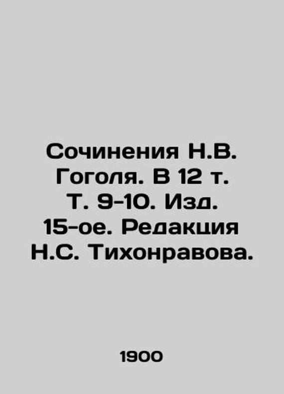 Works by N. V. Gogol. In 12 Vol. Vol. 9-10. Editions 15. Edited by N. S. Tikhonravov./Sochineniya N.V. Gogolya. V 12 t. T. 9-10. Izd. 15-oe. Redaktsiya N.S. Tikhonravova. Volume 9. Youth Experiments. Volume 10. Arabesky. We have thousands of titles and often several copies of each title may be available. Please feel free to contact us for a detailed description of the copies available. The delivery of this book might be delayed beyond the usual timeframe due to extended processing and preparation before shipment, and faster shipping options are not offered. Please inform us if you need the order by a certain date or have a deadline.SKUbd-8f2f8f74ba3179f4