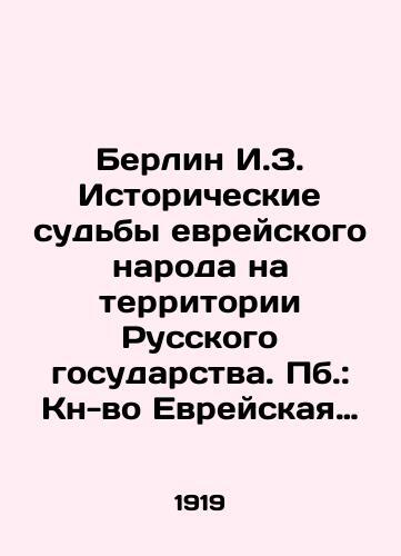 "Berlin I.Z. Historical fates of the Jewish people in the territory of the Russian state/Berlin I.Z. Istoricheskie sudby evreyskogo naroda na territorii Russkogo gosudarstva. Pb.: Kn-vo Evreyskaya istoricheskaya biblioteka, 1919 g.; Berlin I.Z. Historical fates of the Jewish people in the territory of the Russian state. We have thousands of titles and often several copies of each title may be available. Please feel free to contact us for a detailed description of the copies available. SKUbd-90468816c7ee4539."