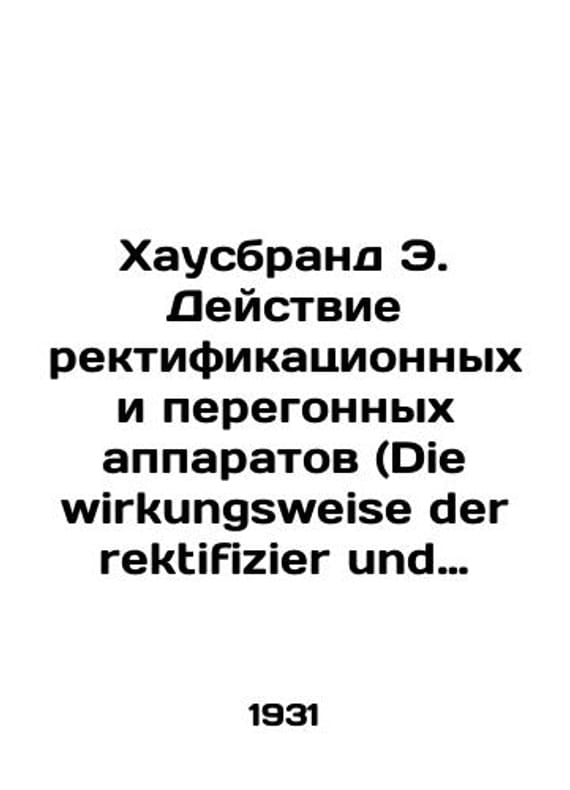 Hausbrand E. Operation of rectification and distillation machines (Die wirkungsweise der rektifizier und destillier-apparate)/Khausbrand E. Deystvie rektifikatsionnykh i peregonnykh apparatov (Die wirkungsweise der rektifizier und destillier-apparate) Hausbrand E. Operation of rectification and distillation apparatus (Die wirkungsweise der rektifizier und destillier-apparate) Translated from the IV German by Prof. K.I. Nogin. SKUbd-919c3a5256932aa5.We have thousands of titles and often several copies of each title may be available. Please feel free to contact us for a detailed description of the copies available. The delivery of this book might be delayed beyond the usual time due to extended processing and preparation before shipment, and faster shipping options are not offered. Please inform us if you need the order by a certain date or have a deadline.SKUbd-919c3a5256932aa5