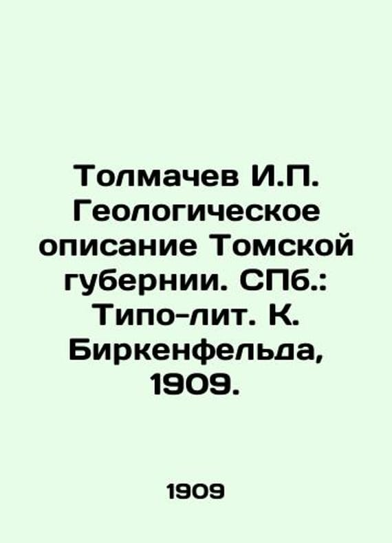 Tolmachev I.P. Geological description of Tomsk province. St. Petersburg: Typo-lit. K. Birkenfeld, 1909./Tolmachev I.P. Geologicheskoe opisanie Tomskoy gubernii. ill.: Tipo-lit. K. Birkenfelda, 1909. Tolmachev I.P. Geological description of Tomsk province. The eastern half of the 15th and southwestern quarter of the 16th sheet of the VIII-th row of the ten-page map (Sheets Tydyn, Usa, and Karlygan). We have thousands of titles and often several copies of each title may be available. Please feel free to contact us for a detailed description of the copies available. SKUbd-91cb8bf2f25bc839.