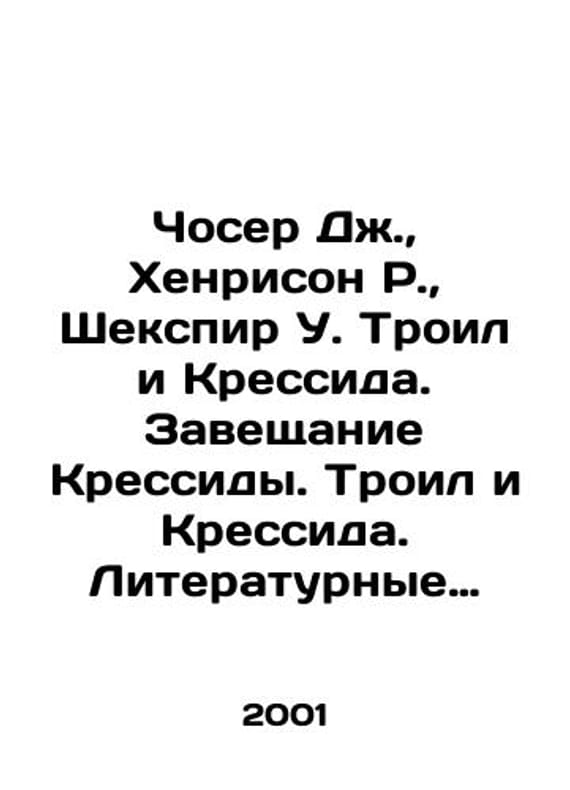 Chaucer J., Henryson R., Shakespeare W. Troil and Cressida. Cressidas testament. Troil and Cressida. Literary monuments./Choser Dzh., Khenrison R., Shekspir U. Troil i Kressida. Zaveshchanie Kressidy. Troil i Kressida. Literaturnye pamyatniki. M.-L. Nauka. Ladomir. 2001. 750. We have thousands of titles and often several copies of each title may be available. Please feel free to contact us for a detailed description of the copies available. SKUbd-921785e064cbf31.