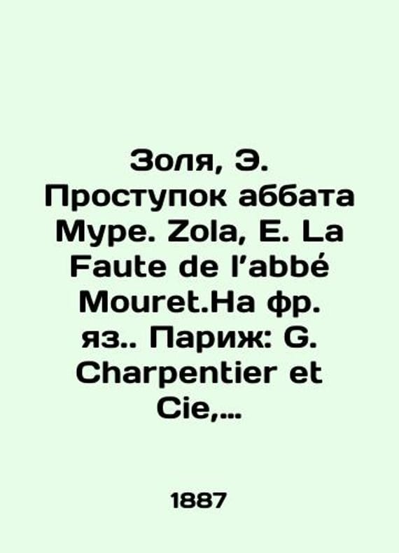 Zola, E. The transgression of Abbe Mouret. Zola, E. La Faute de lAbbe Mouret.Paris: G. Charpentier et Cie, 18/Zolya, E. Prostupok abbata Mure. Zola, E. La Faute de labbe Mouret.Na fr. yaz. Parizh: G. Charpentier et Cie, 18 Zola, E. The transgression of Abbe Mouret. Zola, E. La Faute de lAbbe Mouret.Paris: G. Charpentier et Cie, 1887. 4, 428We have thousands of titles and often several copies of each title may be available. Please feel free to contact us for a detailed description of the copies available. SKUbd-9288982fa0fd21fe.