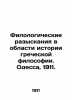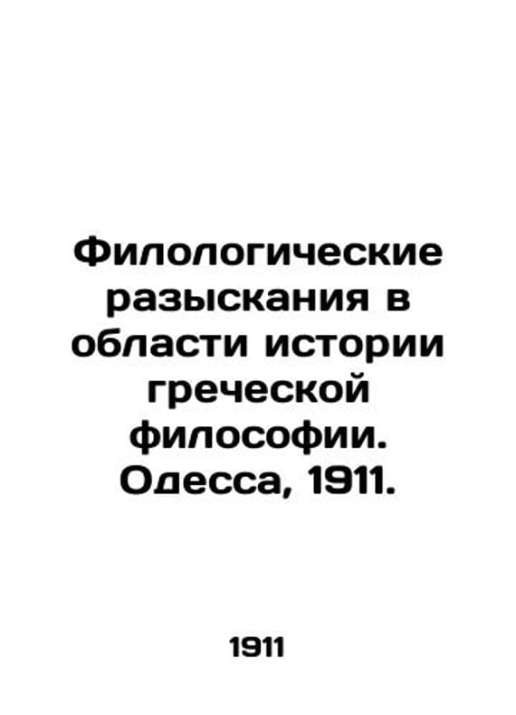 Philological Questionnaires in the History of Greek Philosophy. Odessa, 1911./Filologicheskie razyskaniya v oblasti istorii grecheskoy filosofii. Odessa, 1911. Mendes M.I. Eleaty. Philological Investigations in the Field of the History of Greek Philosophy. Series: Notes of the Novorossiysk University of History and Philology Faculty. Edited by Professor A. Dobroklansky. Issue 4. Odessa: Type. Technician, 1911.-6, 316 We have thousands of titles and often several copies of each title may be available. Please feel free to contact us for a detailed description of the copies available. SKUbd-935ee3c0a0039c5e.