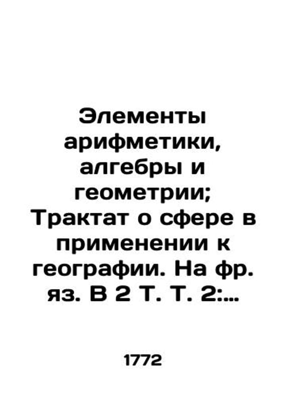 "Elements of arithmetic, algebra, and geometry; Treatise on the sphere in its application to geography. In French, in Vol.2: Elements of geometry; Treatise on the sphere. Paris: NYON laine, 1772./Elementy arifmetiki, algebry i geometrii; Traktat o sfere v primenenii k geografii. Na fr. yaz. V 2 T. T. 2: Elementy geometrii; Traktat o sfere. Parizh: NYON laine, 1772. Elements of arithmetic, algebra, and geometry; Treatise on the sphere in its application to geography. In French, in Vol.2: Elements of geometry; Treatise on the sphere. Paris: NYON laine, 1772. We have thousands of titles and often several copies of each title may be available. Please feel free to contact us for a detailed description of the copies available. SKUbd-9377b120d71edd7a."