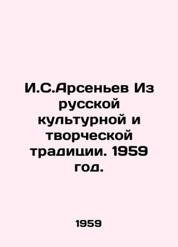 I.S.Arsenyev From the Russian cultural and creative tradition. 1959./I.S.Arsenev Iz russkoy kulturnoy i tvorcheskoy traditsii. 1959 god. The sowing year 1959. The publication is a philosophical and cultural analysis devoted to the study of the foundations of Russian spiritual and cultural life. We have thousands of titles and often several copies of each title may be available. Please feel free to contact us for a detailed description of the copies available. SKUbd-93ba4e36cc909fd.
