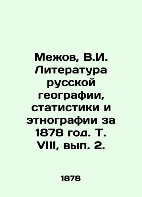 Mezhov, V.I. Literature of Russian Geography, Statistics and Ethnography for 1878, Vol. VIII, Volume 2./Mezhov, V.I. Literatura russkoy geografii, statistiki i etnografii za 1878 god. T. VIII, vyp. 2. Mezhov, V.I. Literature of Russian Geography, Statistics and Ethnography for 1878. Vol. VIII, Issue 2. St. Petersburg: In the printing house of V. Bezobrazova and Comp., 1881. We have thousands of titles and often several copies of each title may be available. Please feel free to contact us for a detailed description of the copies available. SKUbd-93eb96ef460afc37.
