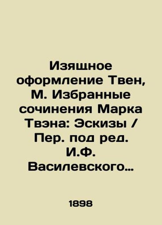 "Short description: Graceful Decoration of Twain, M. Selected works by Mark Twain: Sketches / Translations edited by I.F. Vasilevsky (Letters). I-III.-St. Petersburg: Dragonfly Journal (G. Kornfeld), 1898.-106 p.: il., 1 l. Front (portrait); 23,5x13 cm. We have thousands of titles and often several copies of each title may be available. Please feel free to contact us for a detailed description of the copies available. SKUbd-94687b4bba4814c5"