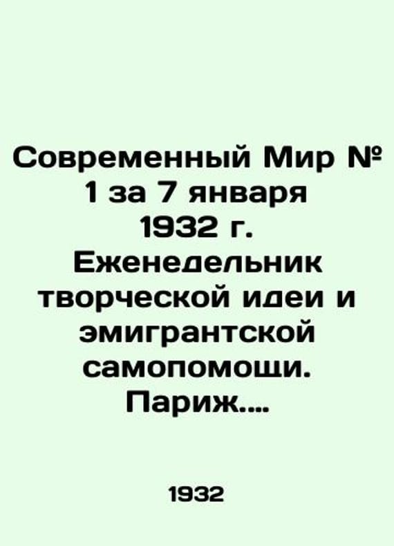 "The Modern World # 1 for January 7, 1932. Weekly of Creative Ideas and Expatriate Self-Help. Paris. 1932.-16 p.; 32x24 sm./Sovremennyy Mir # 1 za 7 yanvarya 1932 g. Ezhenedelnik tvorcheskoy idei i emigrantskoy samopomoshchi. Parizh. 1932.-16 s.; 32x24 sm. The Modern World # 1 of January 7, 1932. Weekly of Creative Ideas and Expatriate Self-Help. Paris. 1932.-16.We have thousands of titles and often several copies of each title may be available. Please feel free to contact us for a detailed description of the copies available. SKUbd-9495b6e598dd19f4."