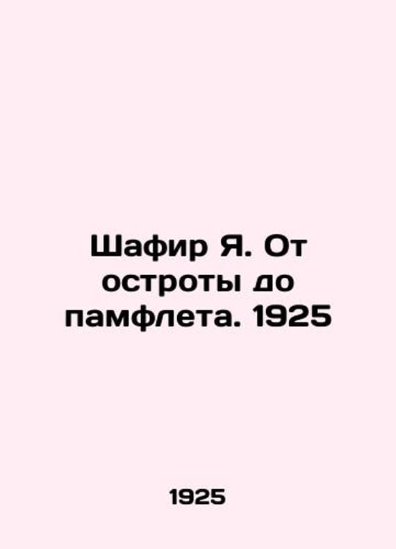 Shafir Ya. From acuity to pamphlet. 1925/Shafir Ya. Ot ostroty do pamfleta. 1925 Shafir Ya. From acuity to pamphlet. Central Bureau of the Section of Press Workers of the Union of Educational Workers of the USSR. 1925. We have thousands of titles and often several copies of each title may be available. Please feel free to contact us for a detailed description of the copies available. The delivery of this book might be delayed beyond the usual timeframe due to extended processing and preparation before shipment, and faster shipping options are not offered. Please inform us if you need the order by a certain date or have a deadline.SKUbd-94dcdfec44ebbac7